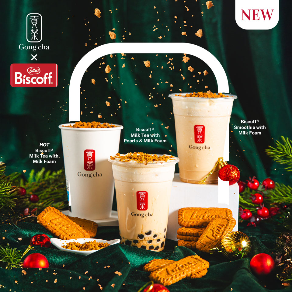 From now until December 31st, Gong cha is rolling out 3 milk tea drinks with Lotus Biscoff cookie crumble toppings.